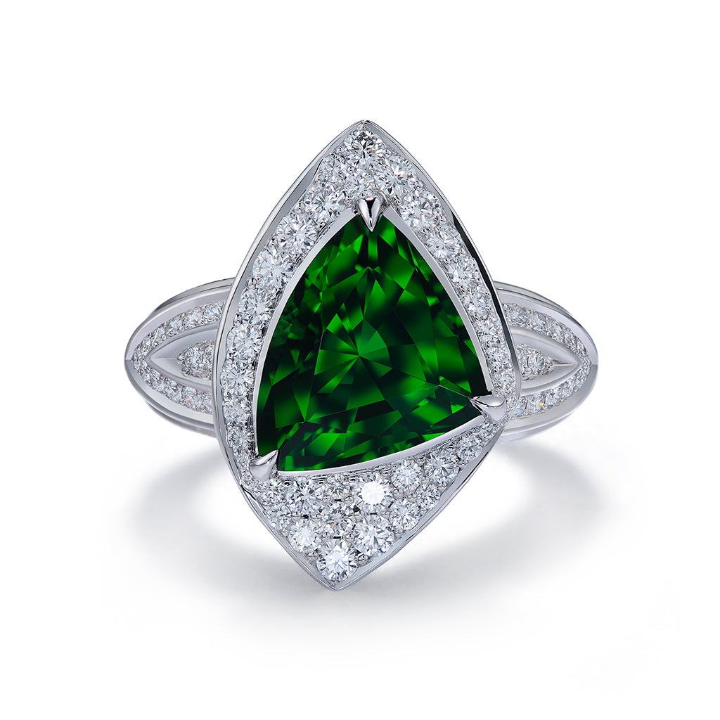Chrome Tourmaline Ring with D Flawless Diamonds set in 18K White Gold