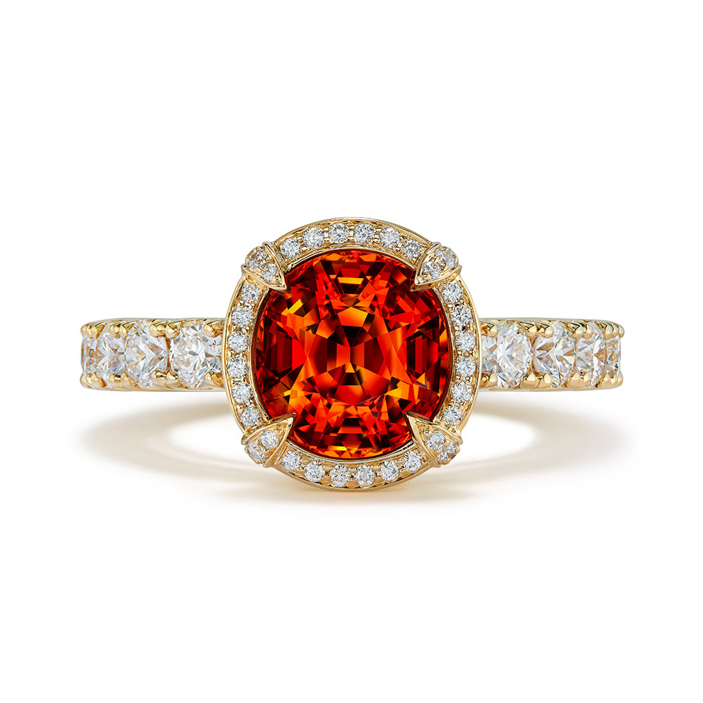 Mandarin Garnet Ring with D Flawless Diamonds set in 18K Yellow Gold