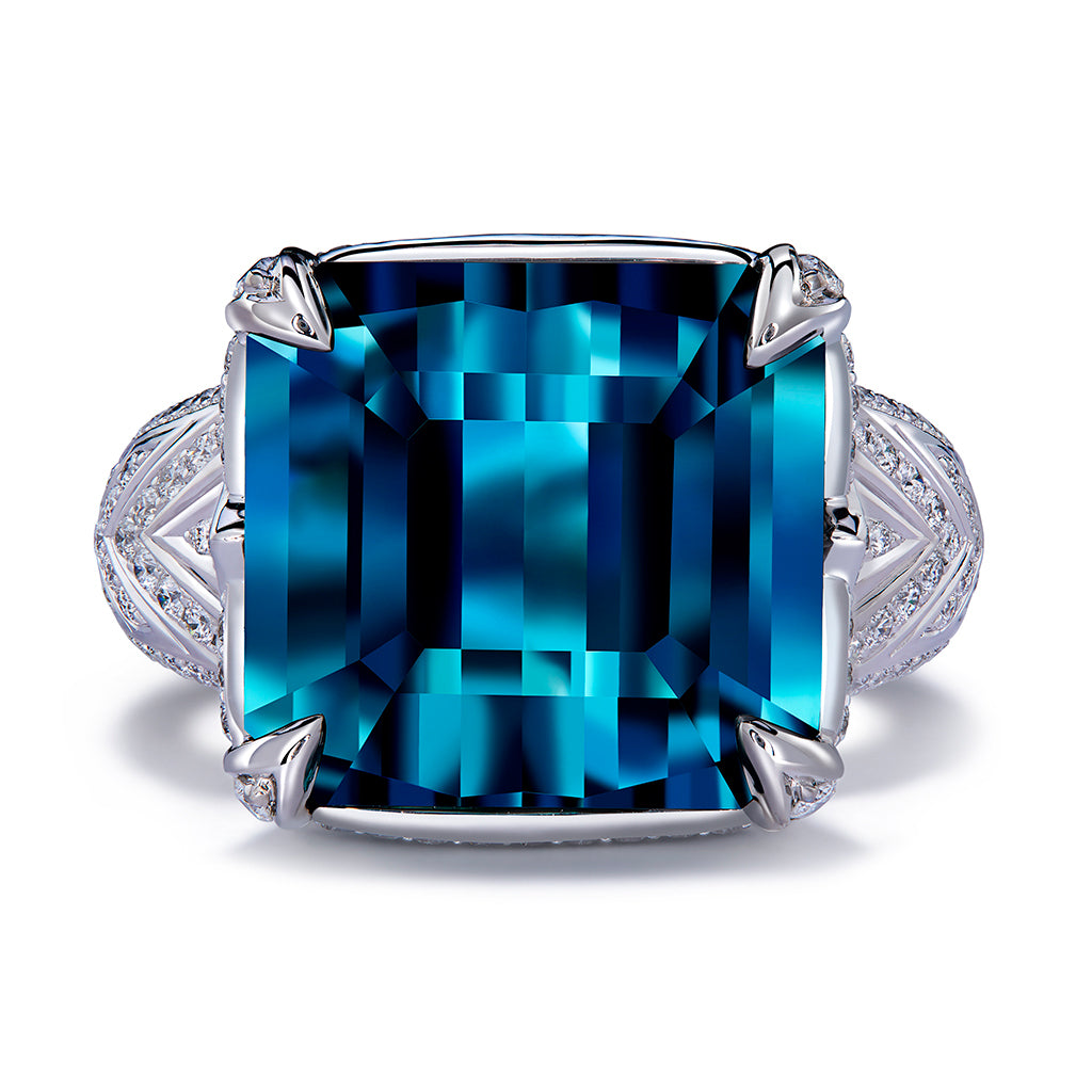 Indicolite Ring with D Flawless Diamonds set in Platinum