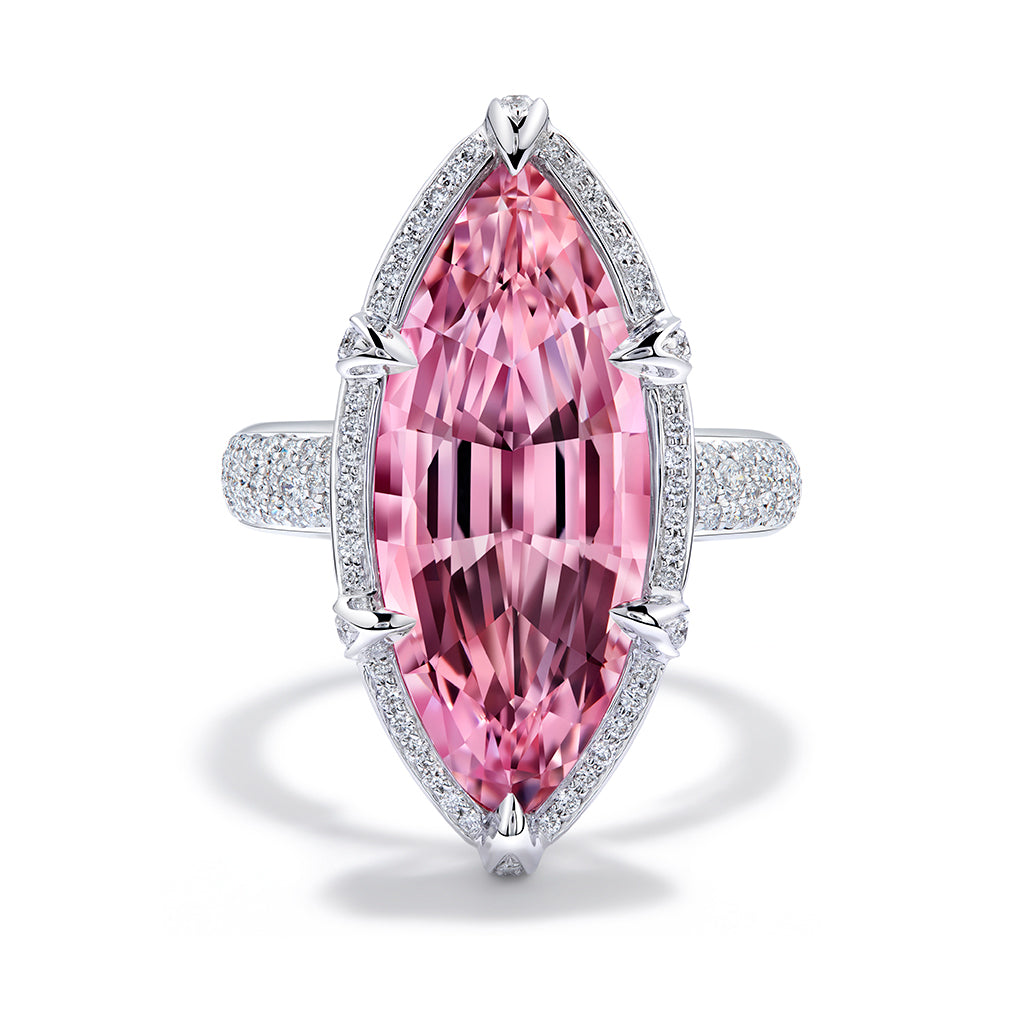 Madagascar Morganite Ring with D Flawless Diamonds set in 18K White Gold