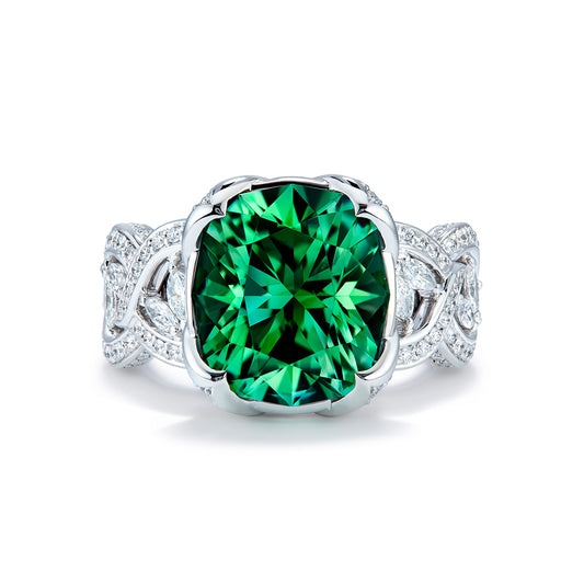Apple Green Paraiba Tourmaline Ring with D Flawless Diamonds set in 18K White Gold