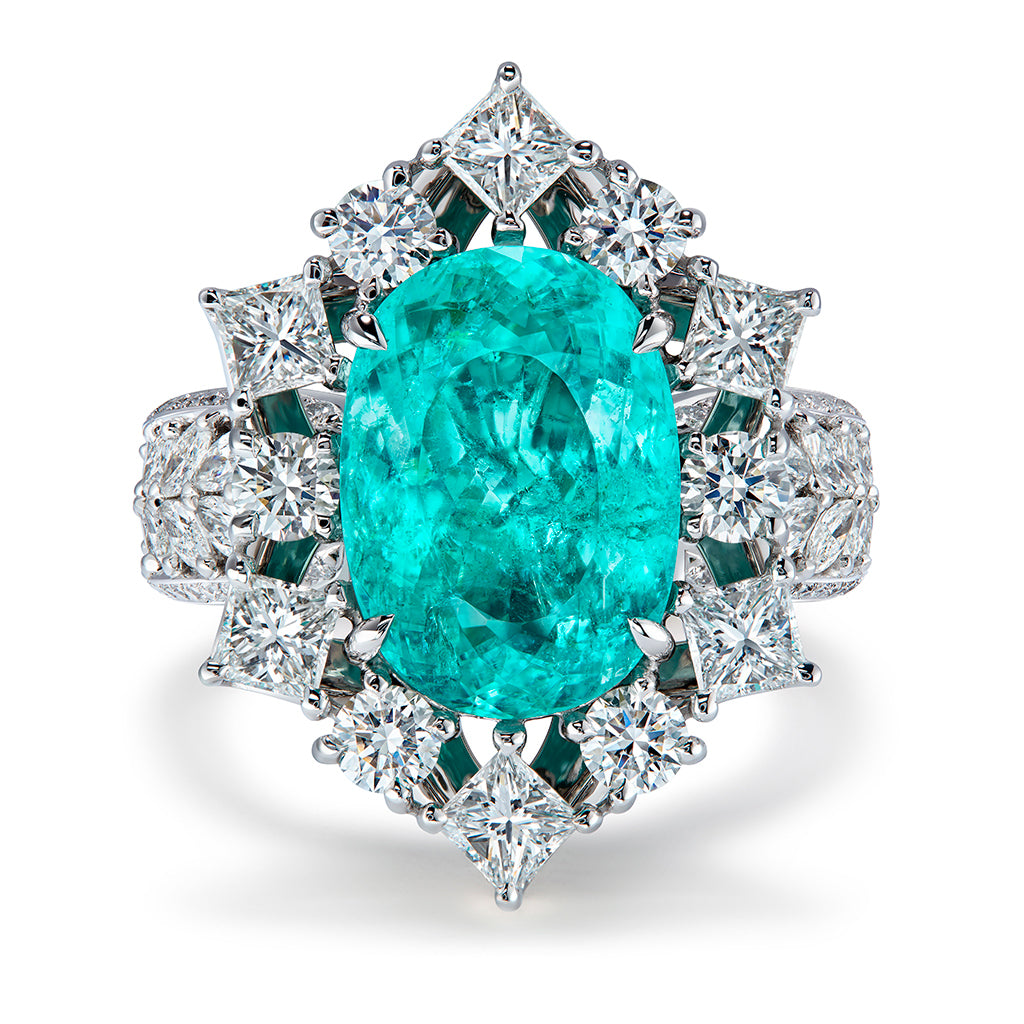 Neon Paraiba Tourmaline Ring with D Flawless Diamonds set in 18K White Gold