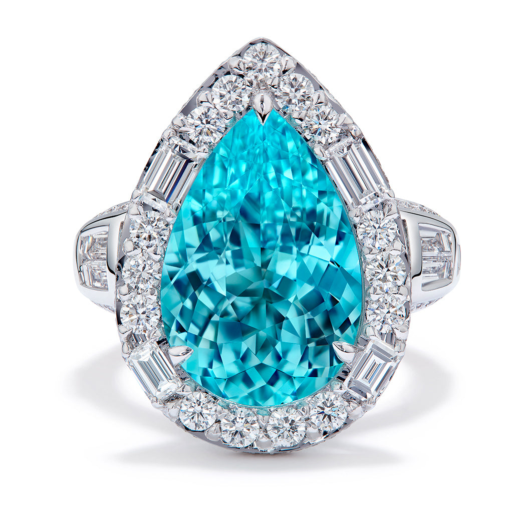Unheated Paraiba Tourmaline Ring with D Flawless Diamonds set in 18K White Gold