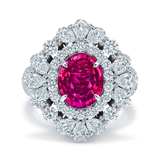 Unheated Mozambique Jedi Ruby Ring with D Flawless Diamonds set in 18K White Gold