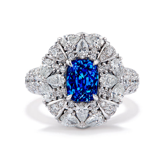 €0.00Sale price€45,390.00 Save €-45,390.00 (%)Unit priceperUnheated Kashmir Color Blue Sapphire Ring with D Flawless Diamonds set in 18K White Gold -