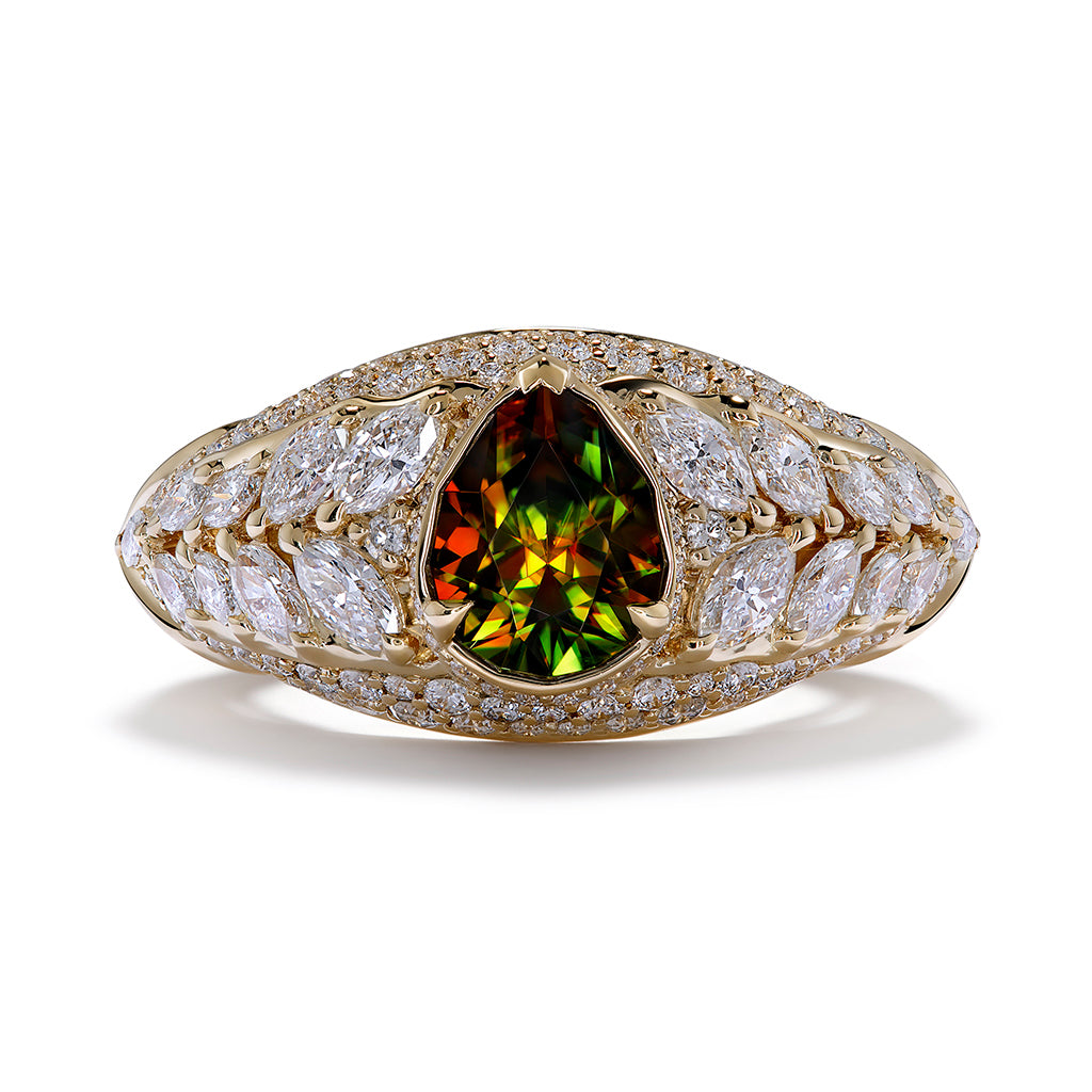 Himalayan Sphene Ring with D Flawless Diamonds set in 18K Yellow Gold