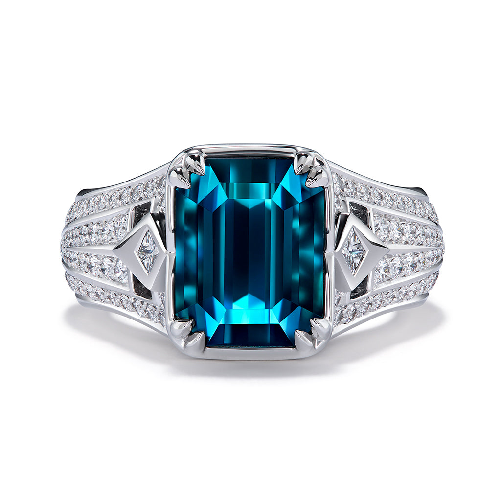 Afghan Indicolite Ring with D Flawless Diamonds set in Platinum