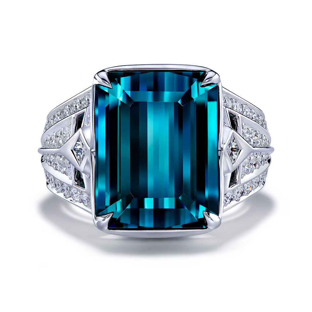 Indicolite Ring with D Flawless Diamonds set in 18K White Gold