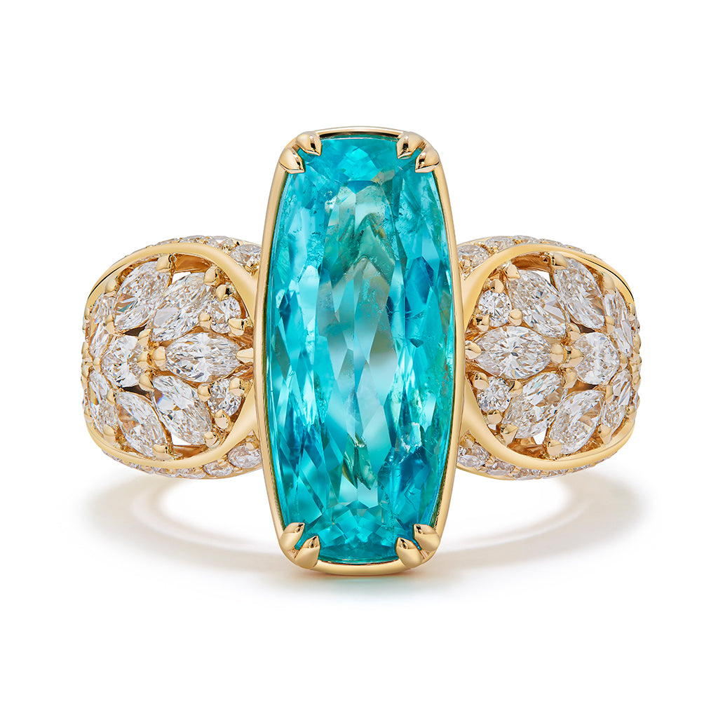 Neon Paraiba Tourmaline Ring with D Flawless Diamonds set in 18K Yellow Gold