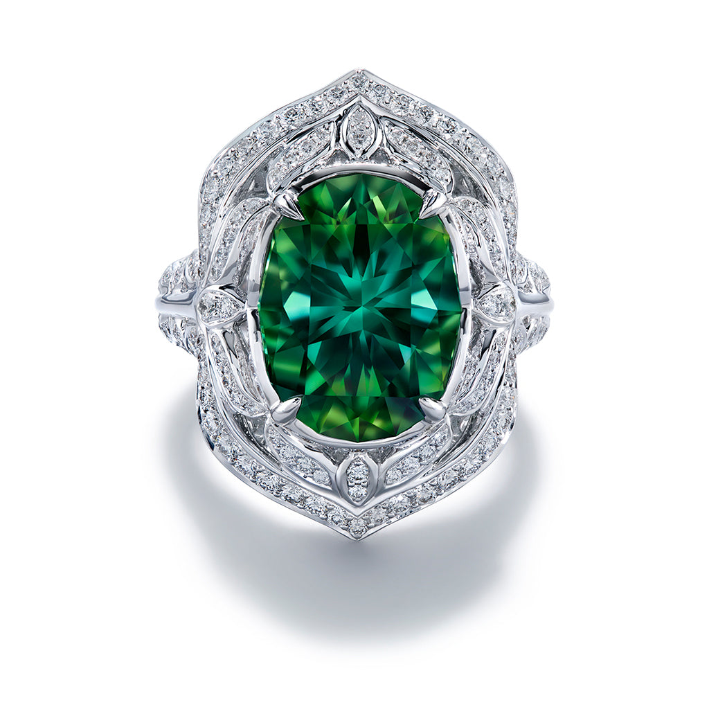 Neon Tourmaline Ring with D Flawless Diamonds set in 18K White Gold
