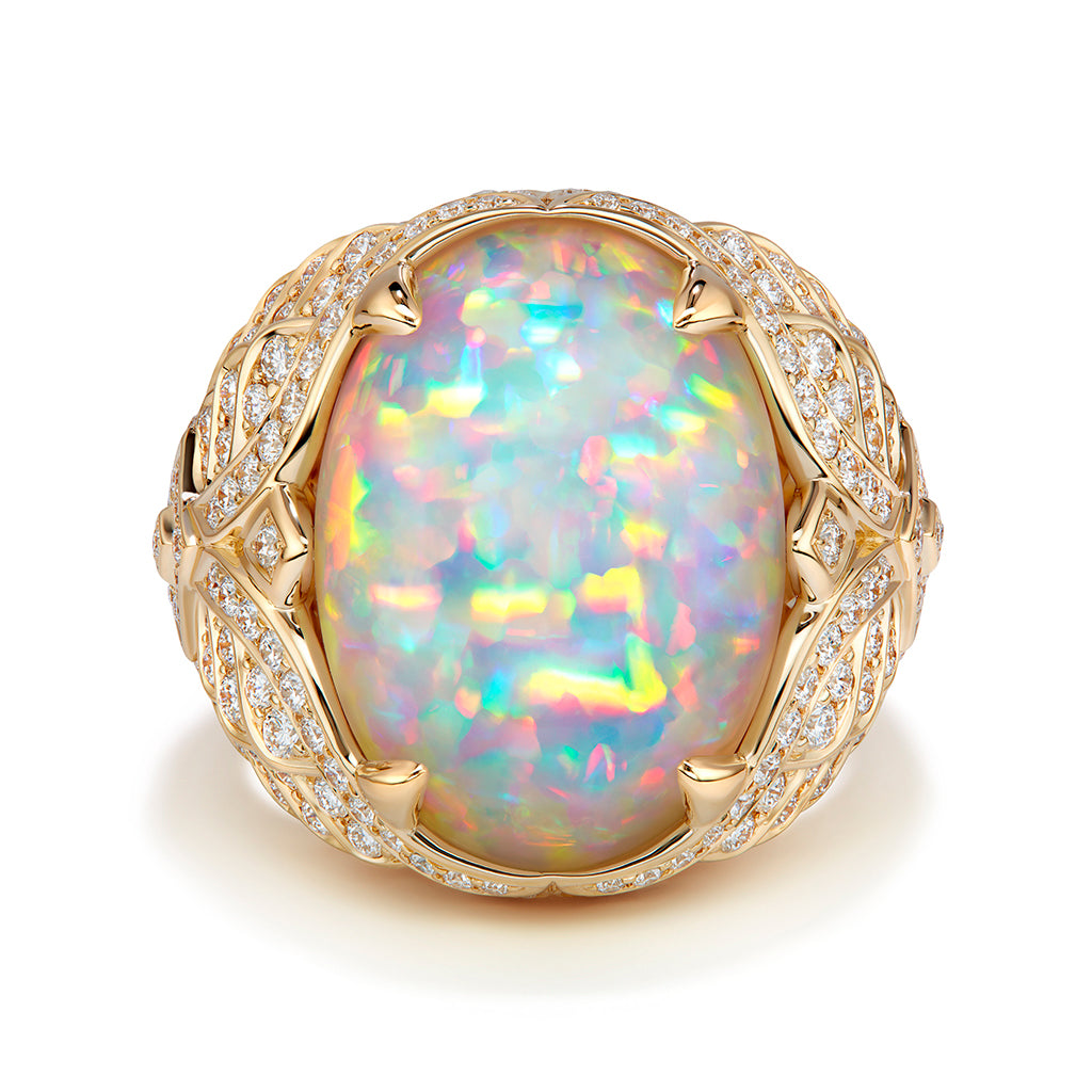 Opal Ring with D Flawless Diamonds set in 18K Yellow Gold