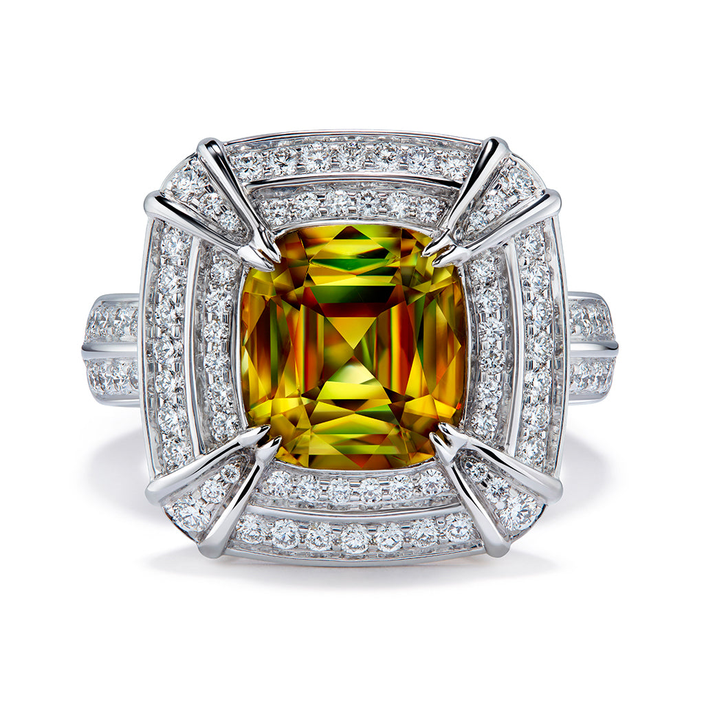 Sphene Ring with D Flawless Diamonds set in 18K White Gold