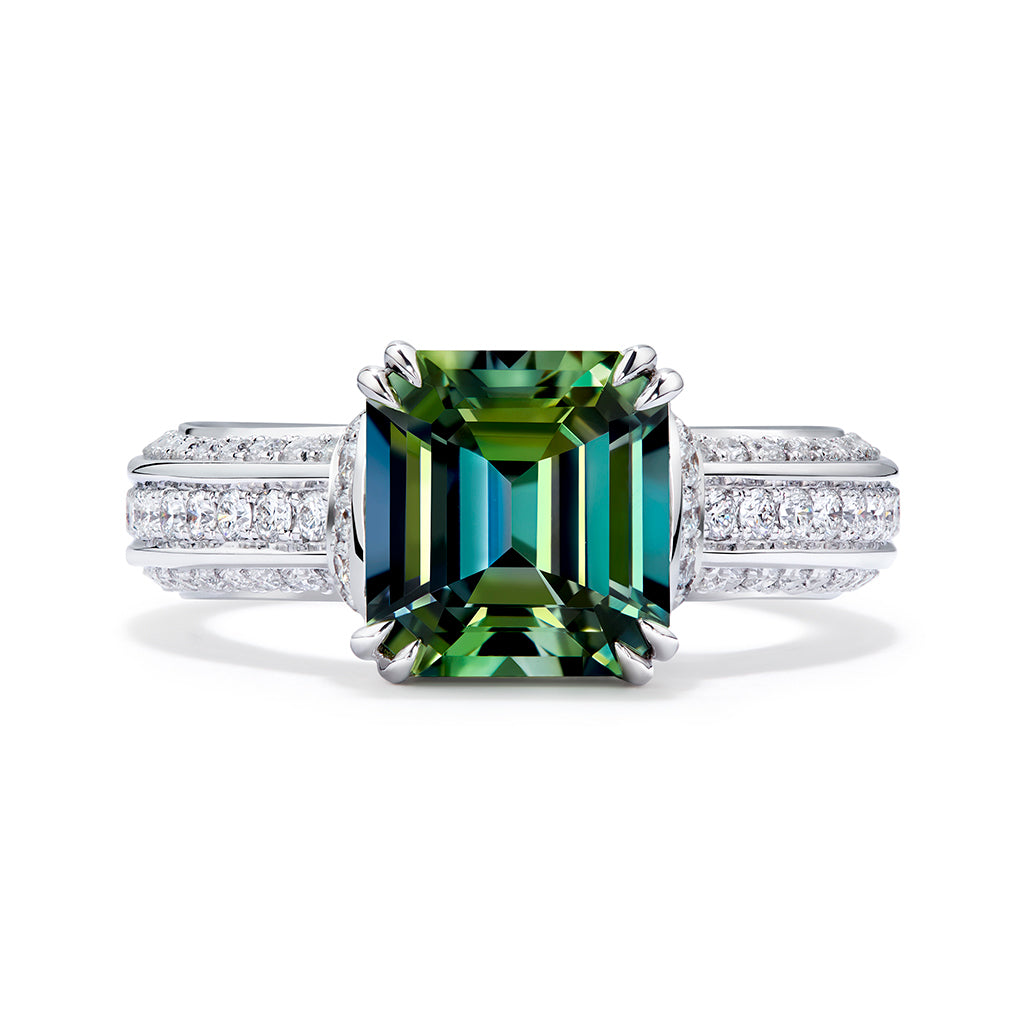 Unheated Green Tanzanite Ring with D Flawless Diamonds set in 18K White Gold