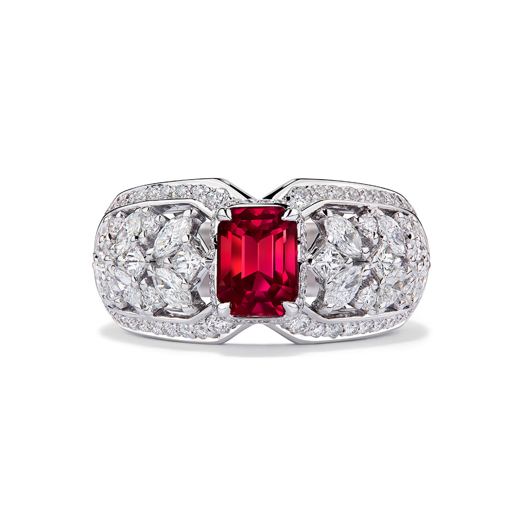 Unheated Luc Yen Jedi Ruby Ring with D Flawless Diamonds set in 18K White Gold