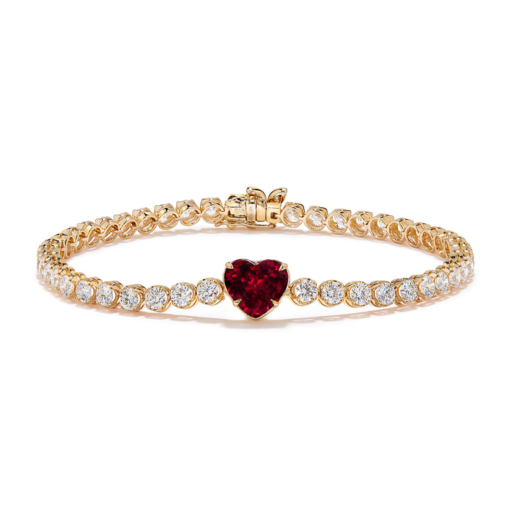 Unheated Vivid Pigeons Blood Ruby Bracelet with D Flawless Diamonds set in 18K Yellow Gold