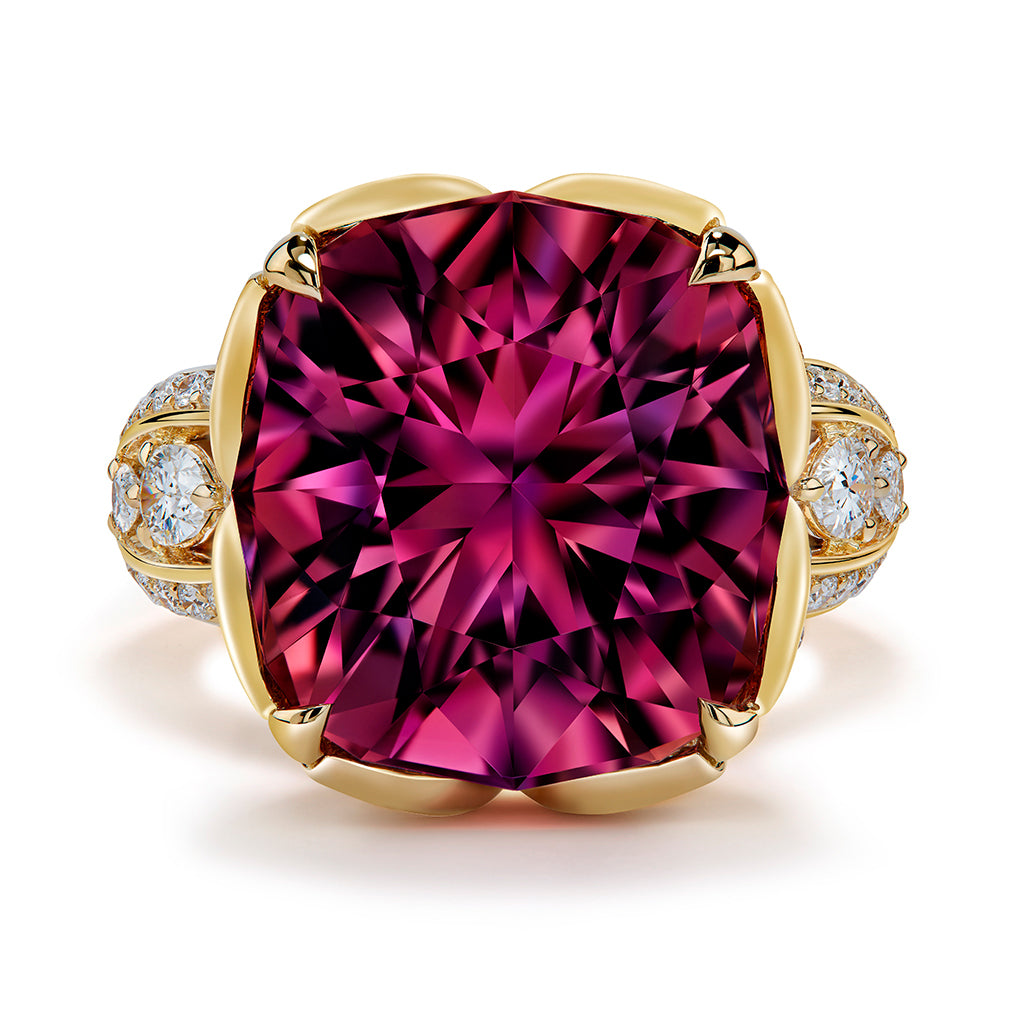 Botswana Neon Titanium Tourmaline Ring with D Flawless Diamonds set in 18K Yellow Gold