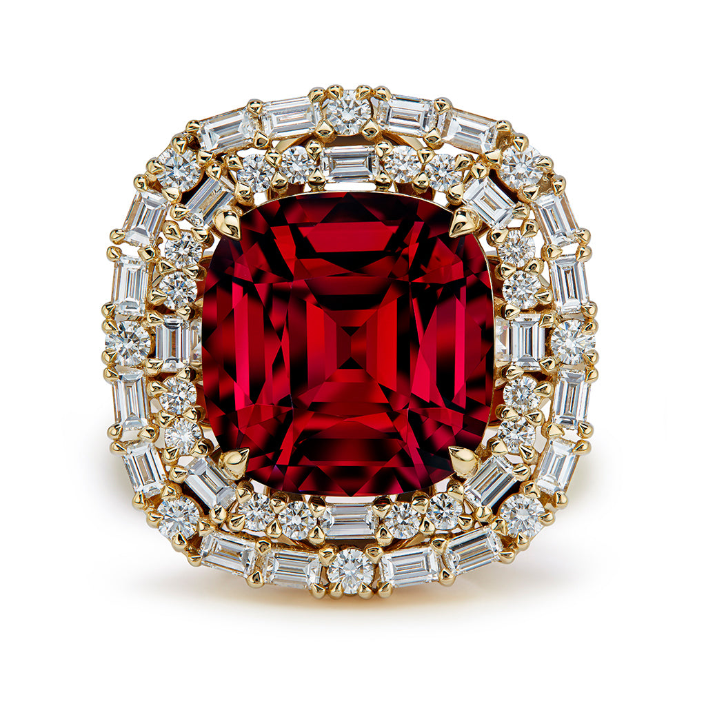 Burmese Noble Red Spinel Ring with D Flawless Diamonds set in 18K Yellow Gold
