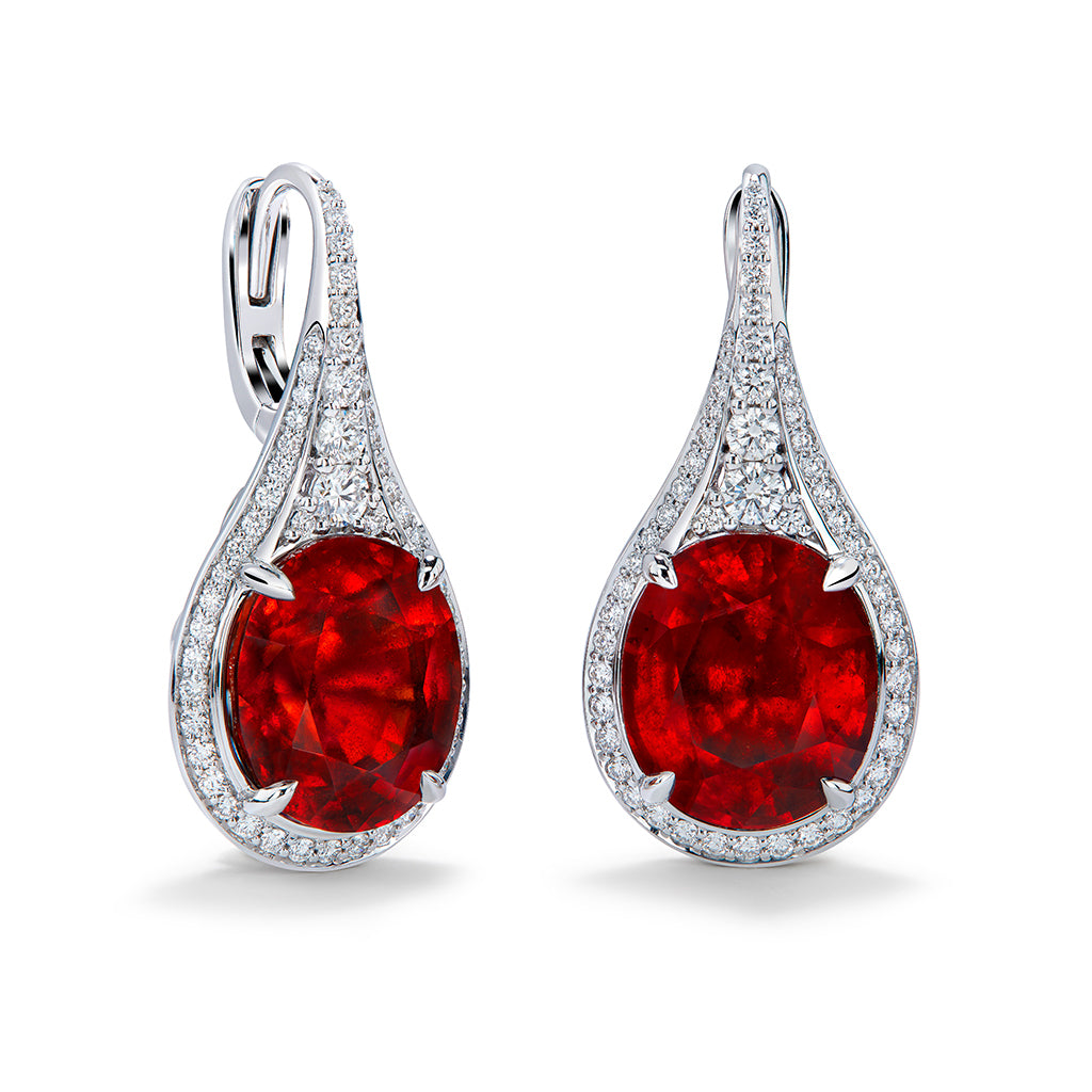 Hessonite Garnet Earrings with D Flawless Diamonds set in 18K White Gold