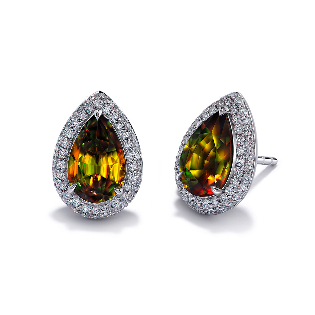 Himalayan Sphene Earrings with D Flawless Diamonds set in Platinum