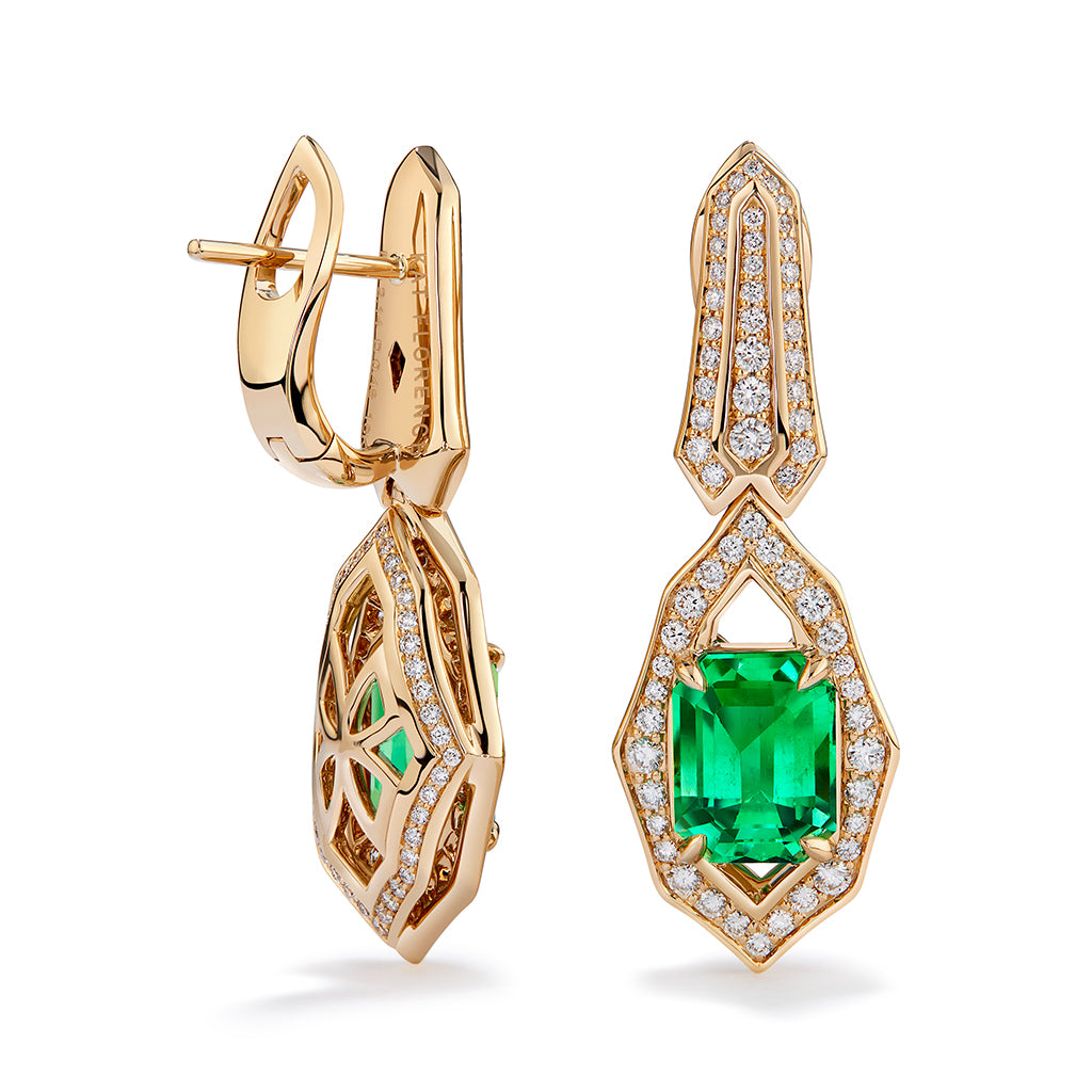 Muzo Colombian Emerald Earrings with D Flawless Diamonds set in 18K Yellow Gold