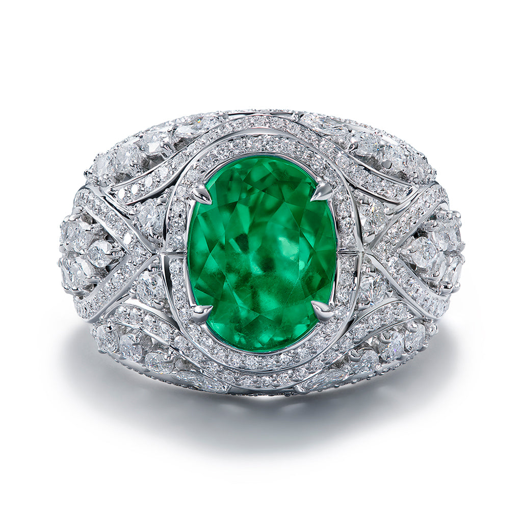 Muzo Colombian Emerald Ring with D Flawless Diamonds set in 18K White Gold