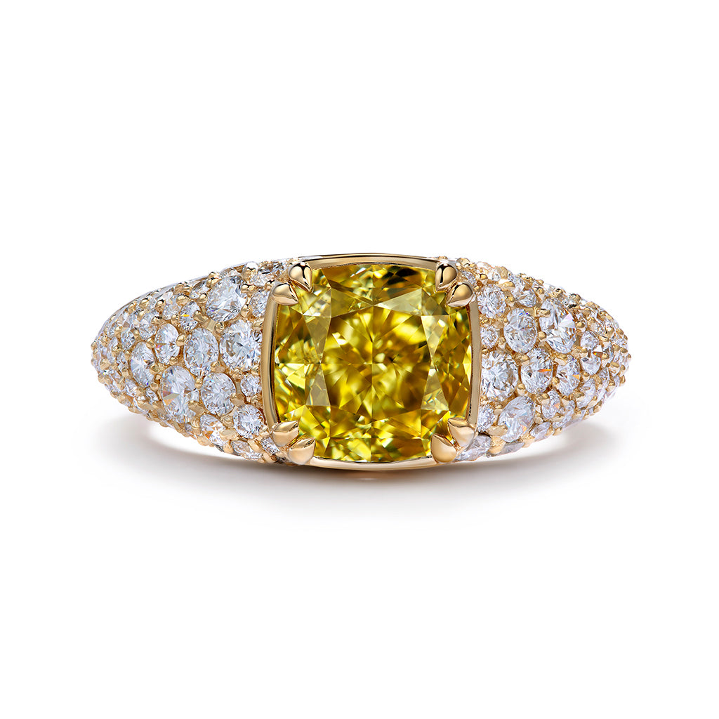 Natural Yellow Botswana Diamond Ring with D Flawless Diamonds set in 18K Yellow Gold