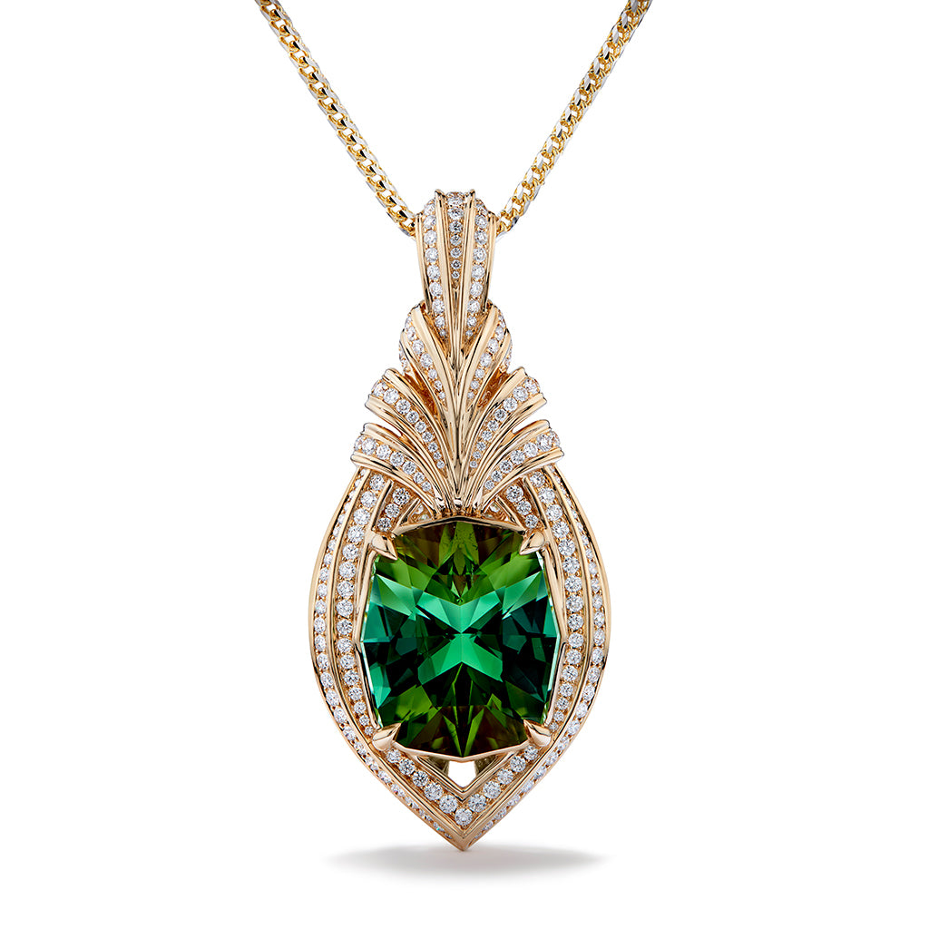 Neon Titanium Tourmaline Necklace with D Flawless Diamonds set in 18K Yellow Gold