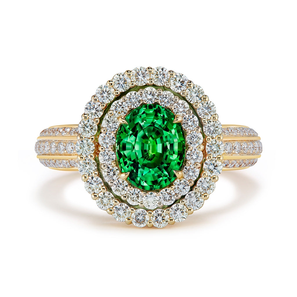 Neon Tsavorite Ring with D Flawless Diamonds set in 18K Yellow Gold