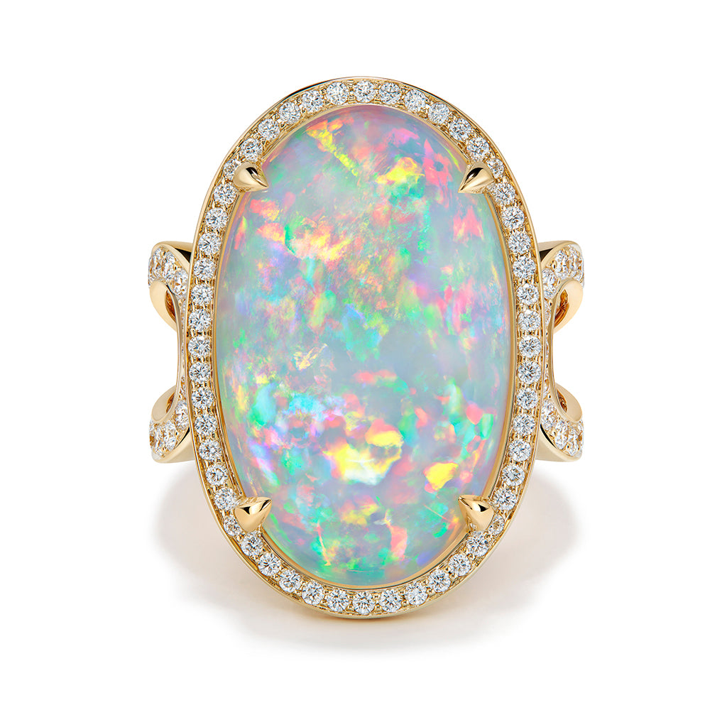 Opal Ring with D Flawless Diamonds set in 18K Yellow Gold