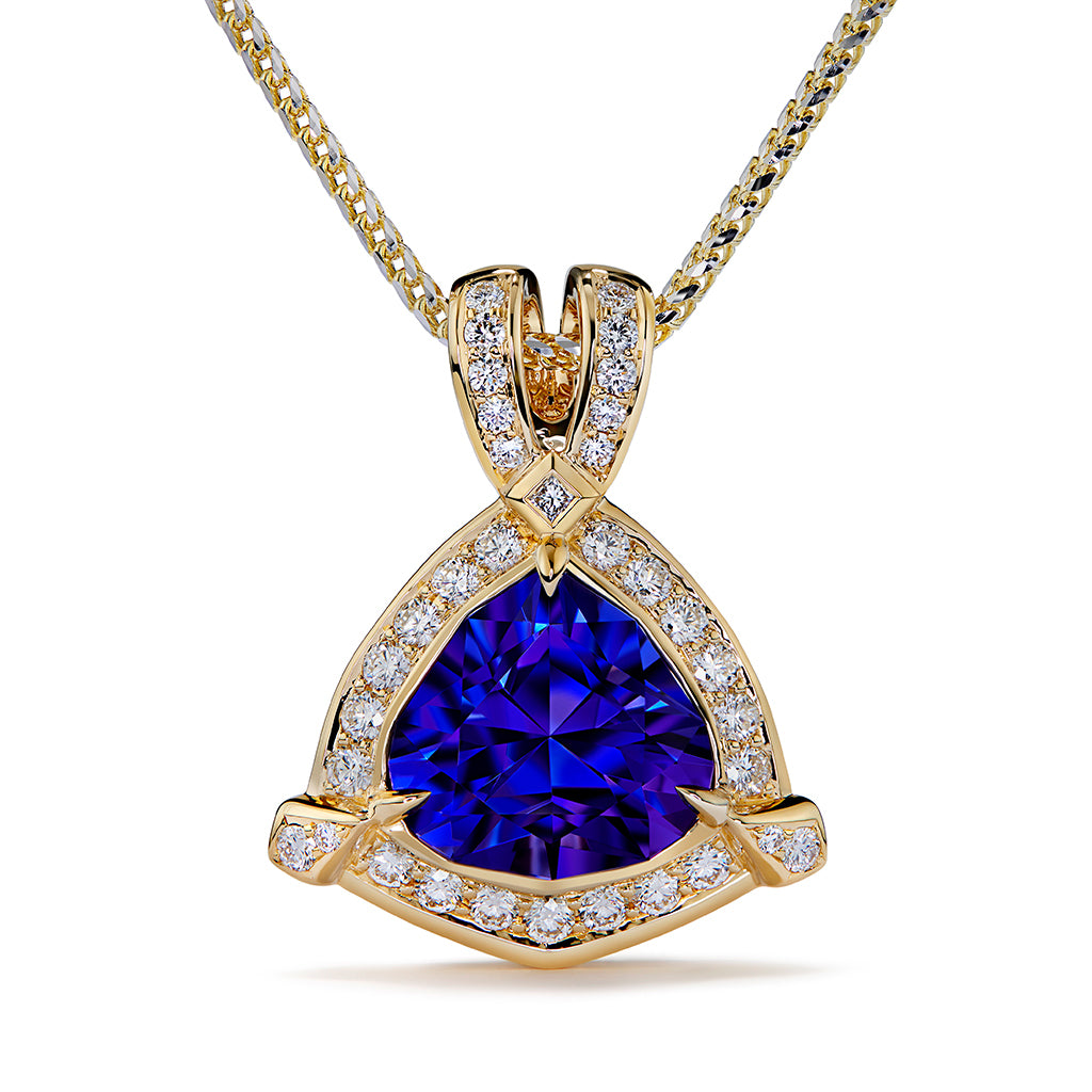 Tanzanite Necklace with D Flawless Diamonds set in 18K Yellow Gold