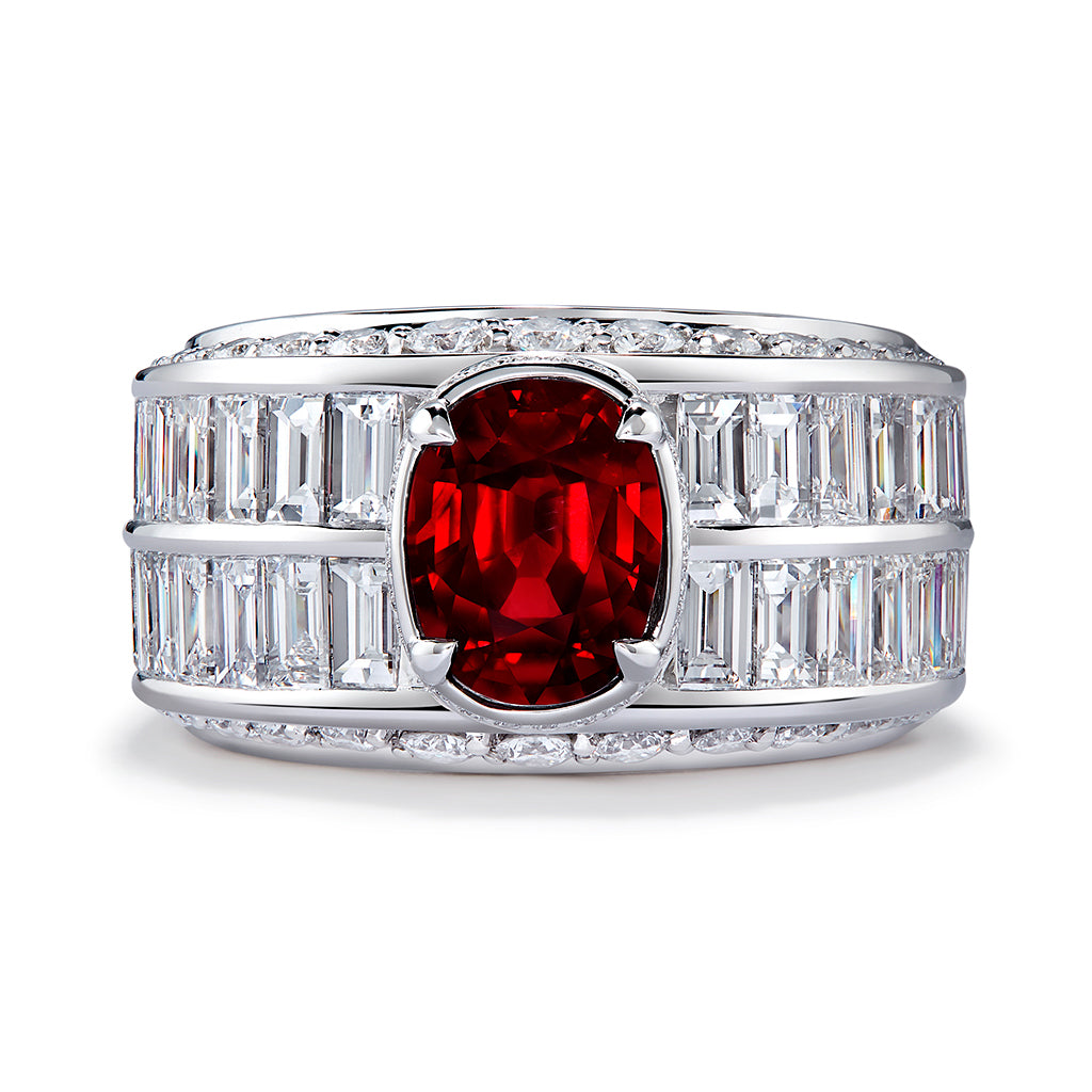 Unheated Gemfields Pigeon Blood Ruby Ring with D Flawless Diamonds set in Platinum