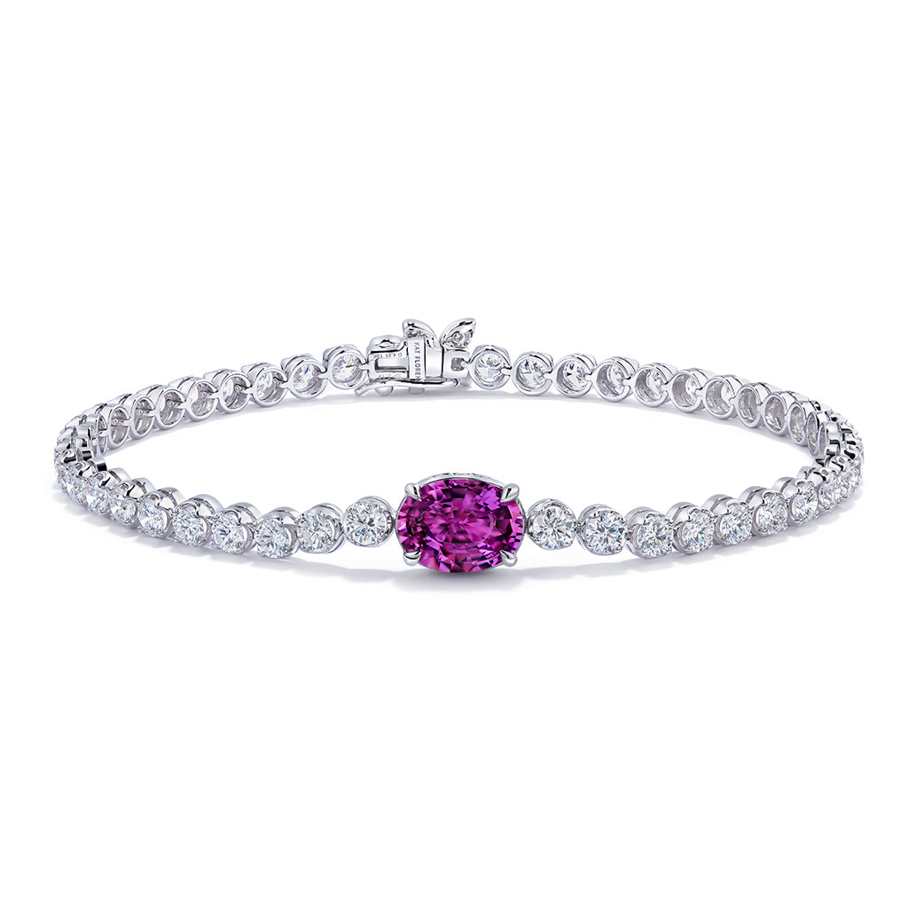 Unheated Ilakaka Pink Sapphire Bracelet with D Flawless Diamonds set in 18K White Gold
