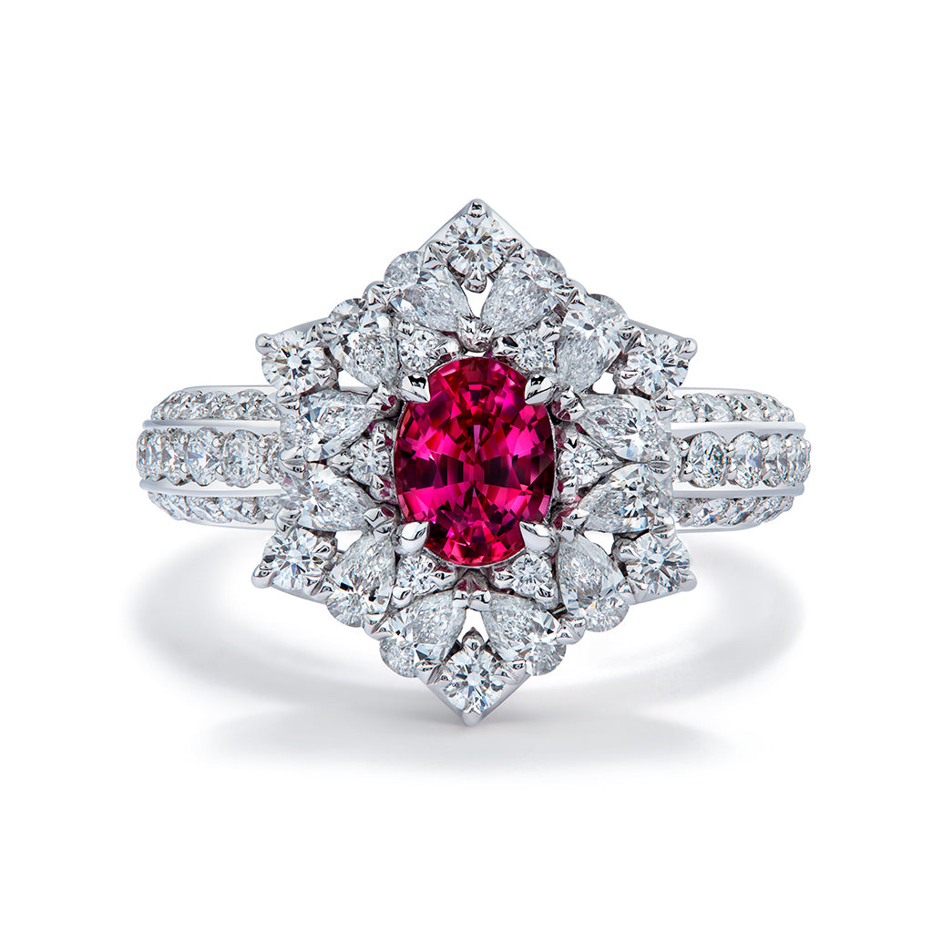 Unheated Luc Yen Jedi Ruby Ring with D Flawless Diamonds set in 18K White Gold