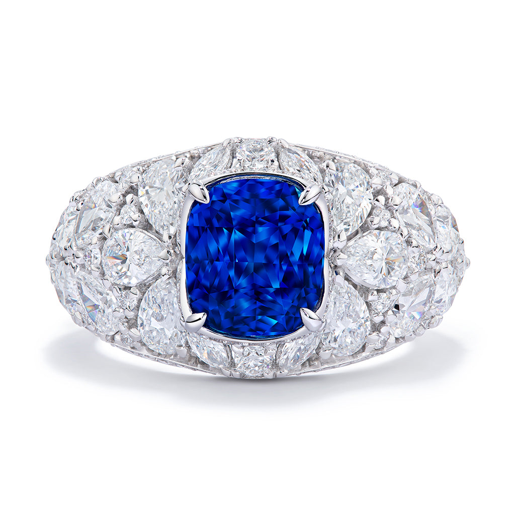 Unheated Madagascar Cornflower Blue Sapphire Ring with D Flawless Diamonds set in 18K White Gold