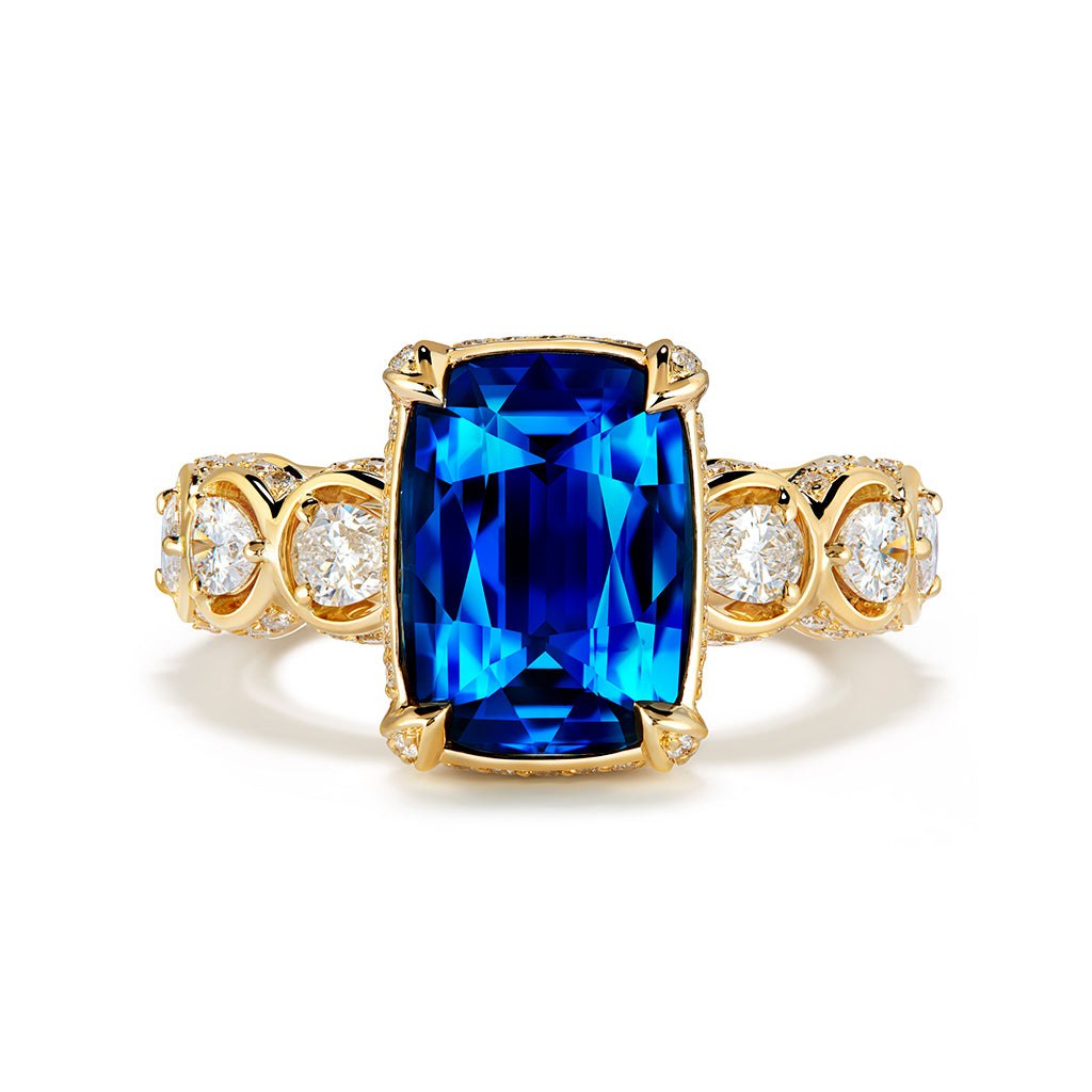 Vietnam Cobalt Spinel Ring with D Flawless Diamonds set in 18K Yellow Gold